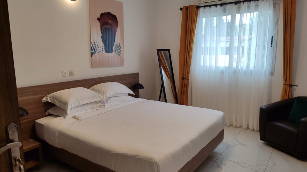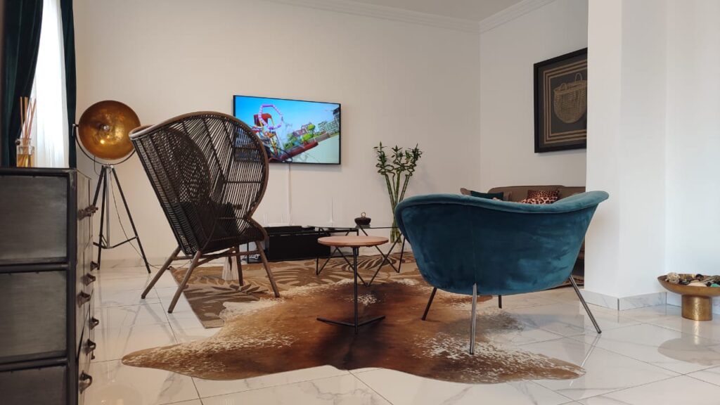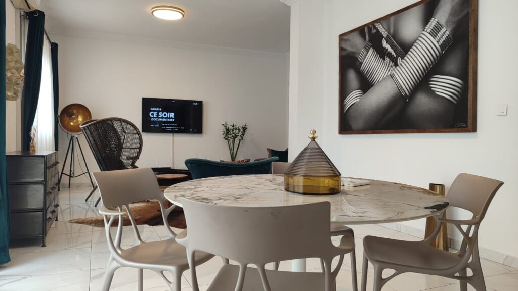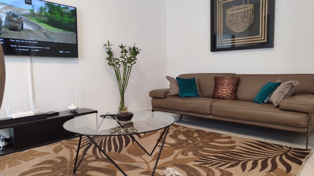 magnifique appartement meublé haut standing de 4 pièces avec piscine commune, idéalement situé au premier étage à Cocody Riviera 3, juste derrière le restaurant KFC et en face du Lycée Américain. Conçu pour vos séjours courts ou longs à Abidjan, cet espace élégant offre: