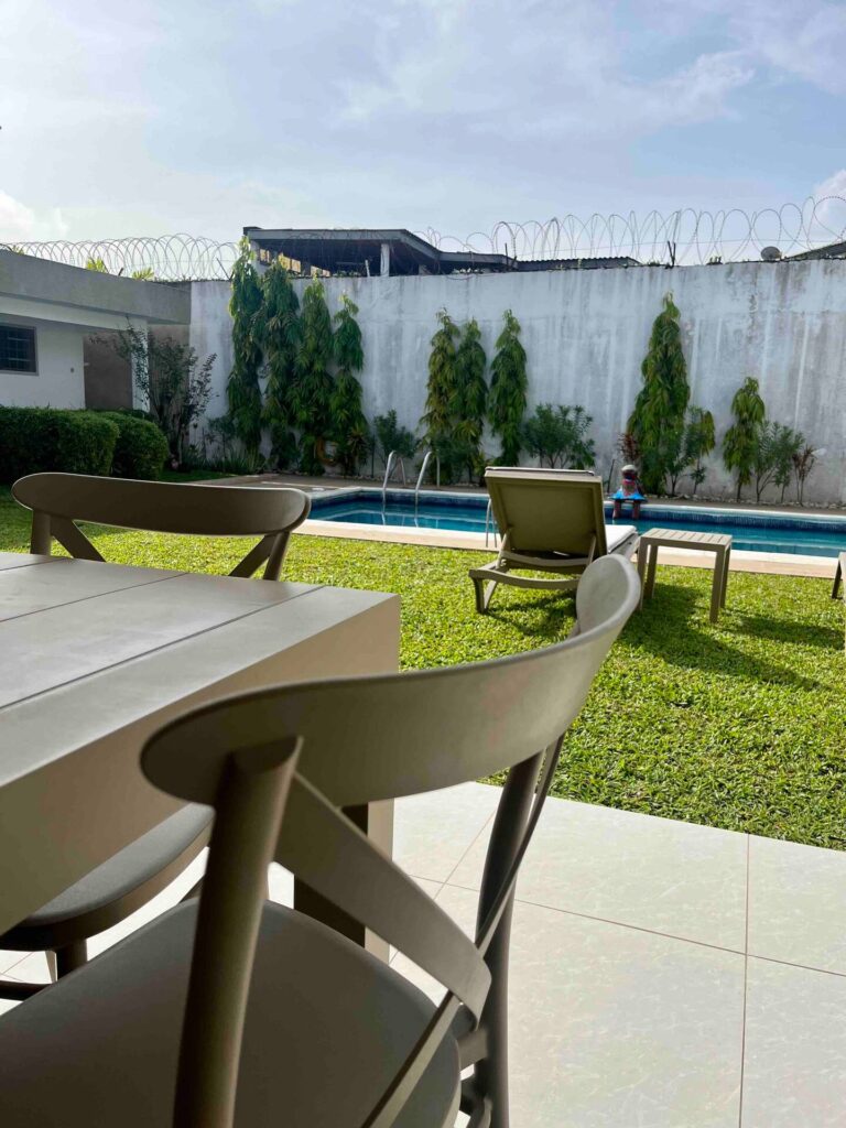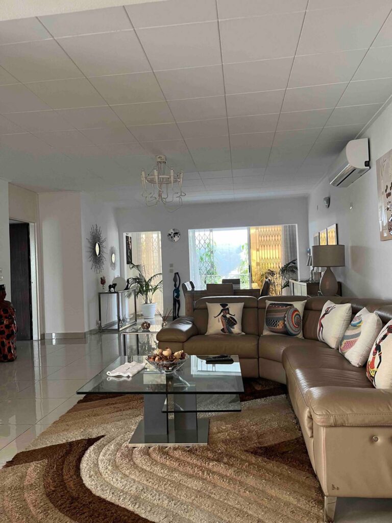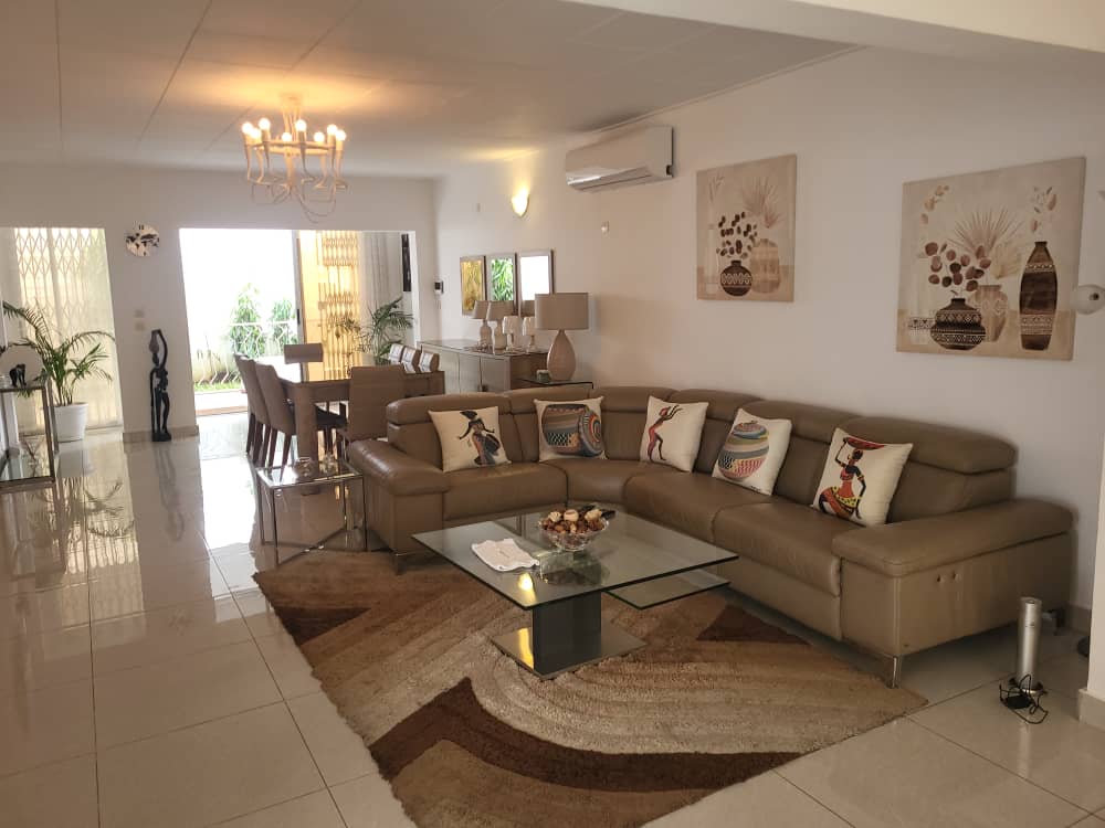 ce superbe villa t6  meublé de haut standing  ,Comprenant 1 chambre extérieure face à la piscine avec sa salle de bain , 1 grande chambre principale avec salle de bain , 2 grandes chambres avec leurs salles de bain et 1 chambre d’enfants ou bureau . Vous pourrez profiter de deux belles terrasses à l’avant et à l’arrière de la villa donnant sur la piscine . Quartier sécurisé et calme .